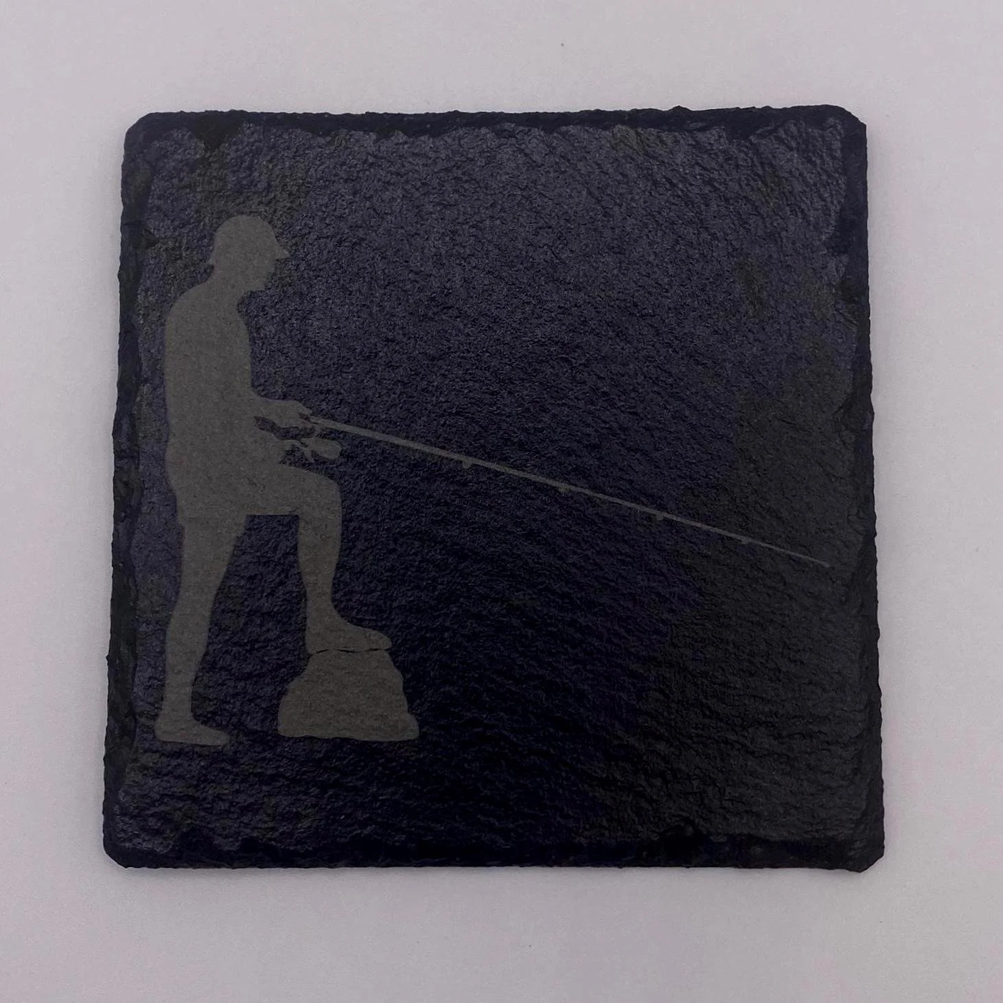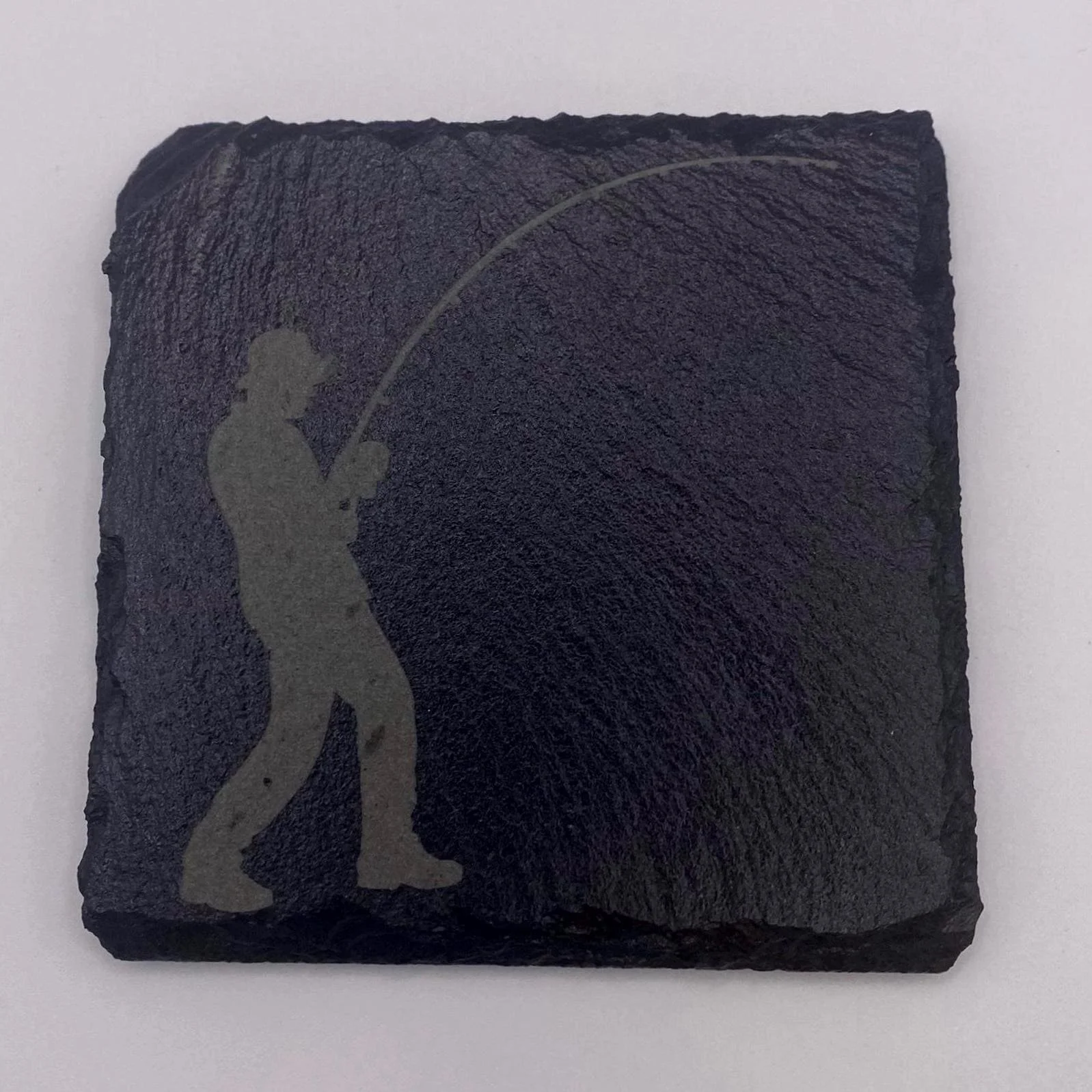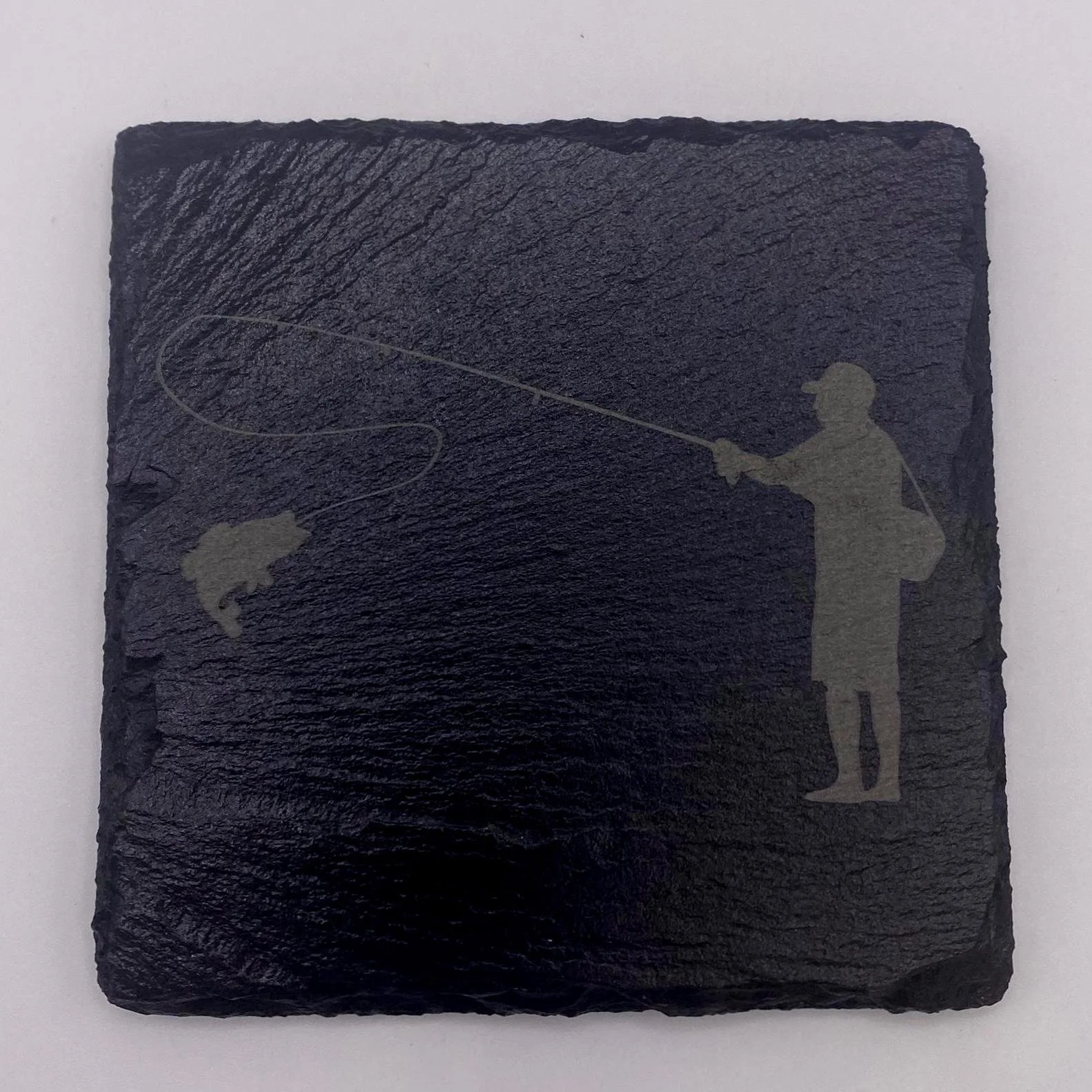 Engraved Slate Coaster Set - Fishing Theme | Rustic Gift for Anglers