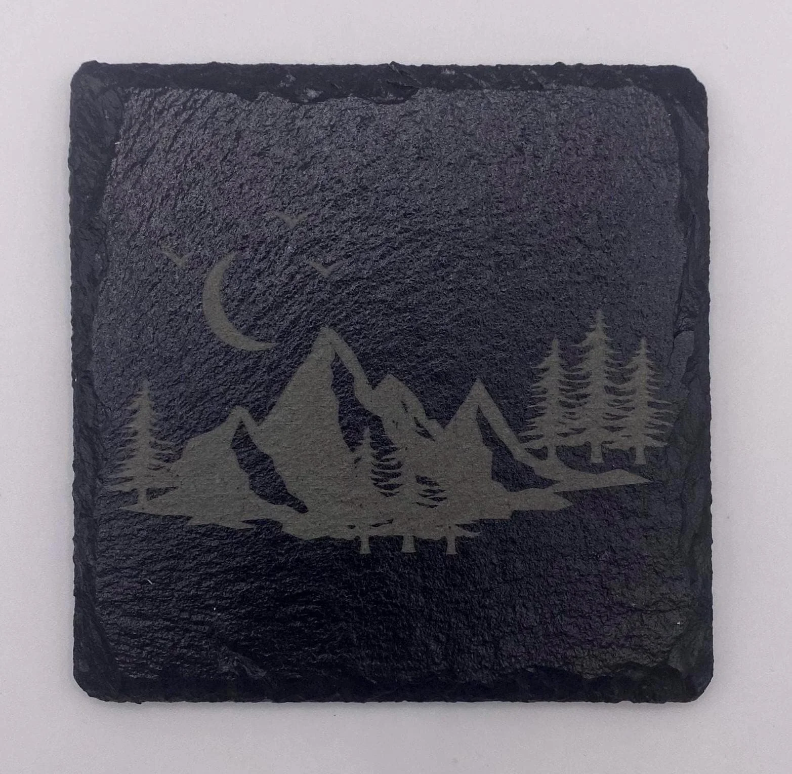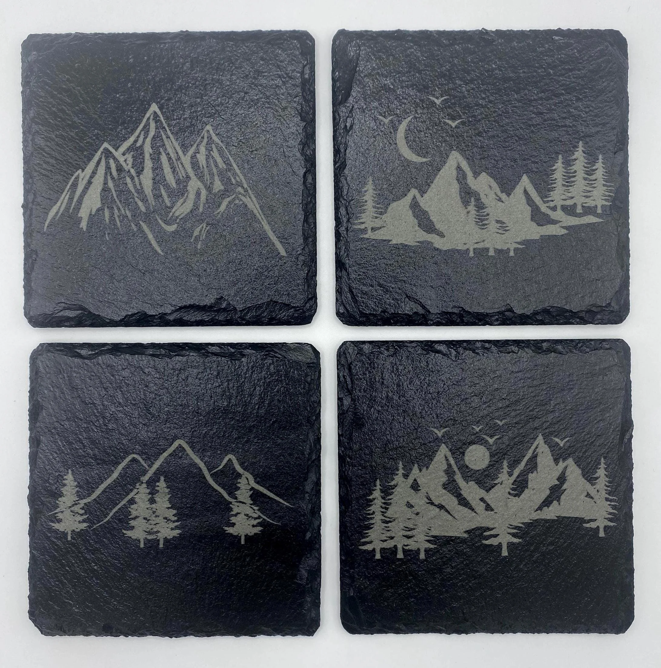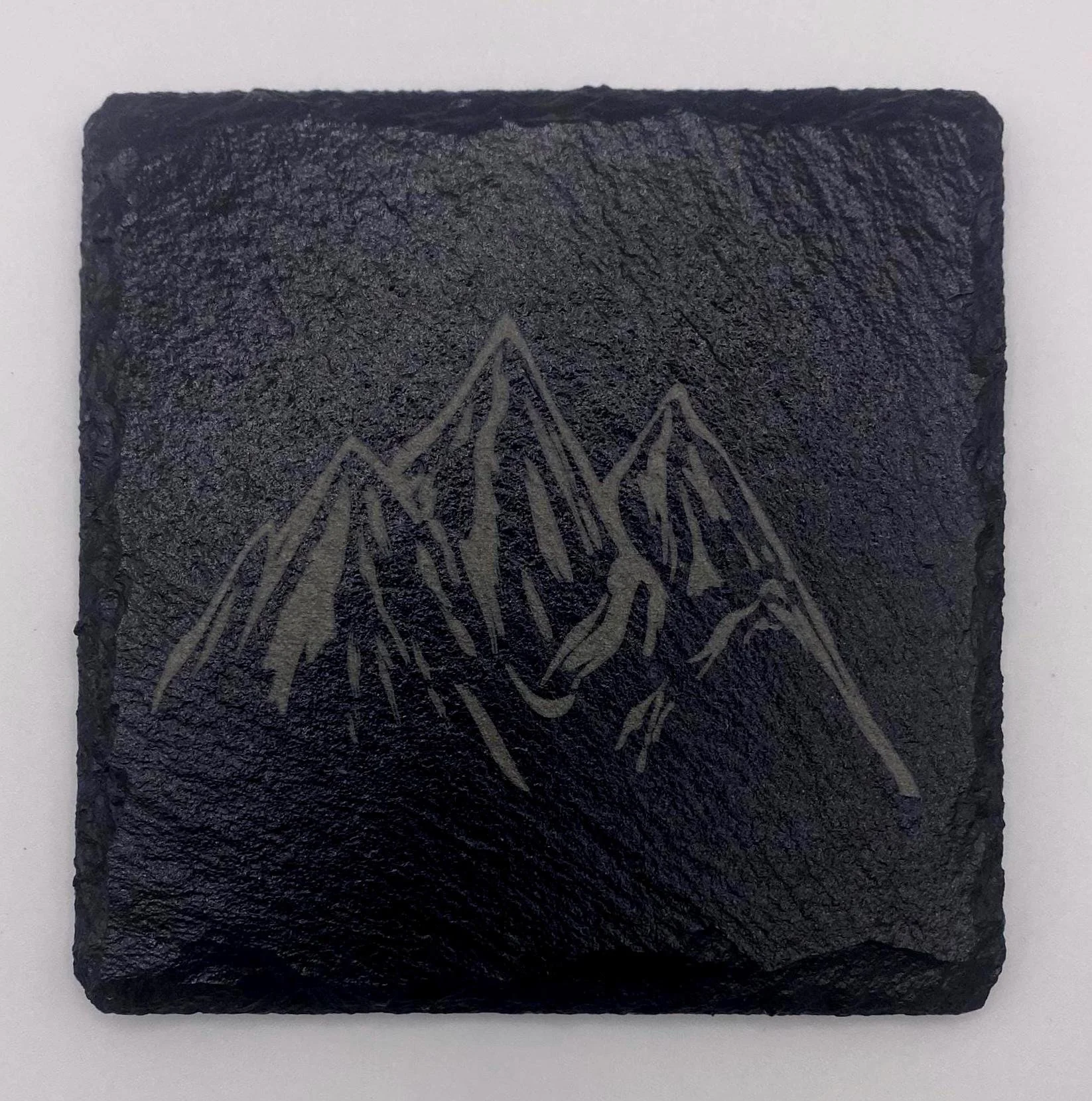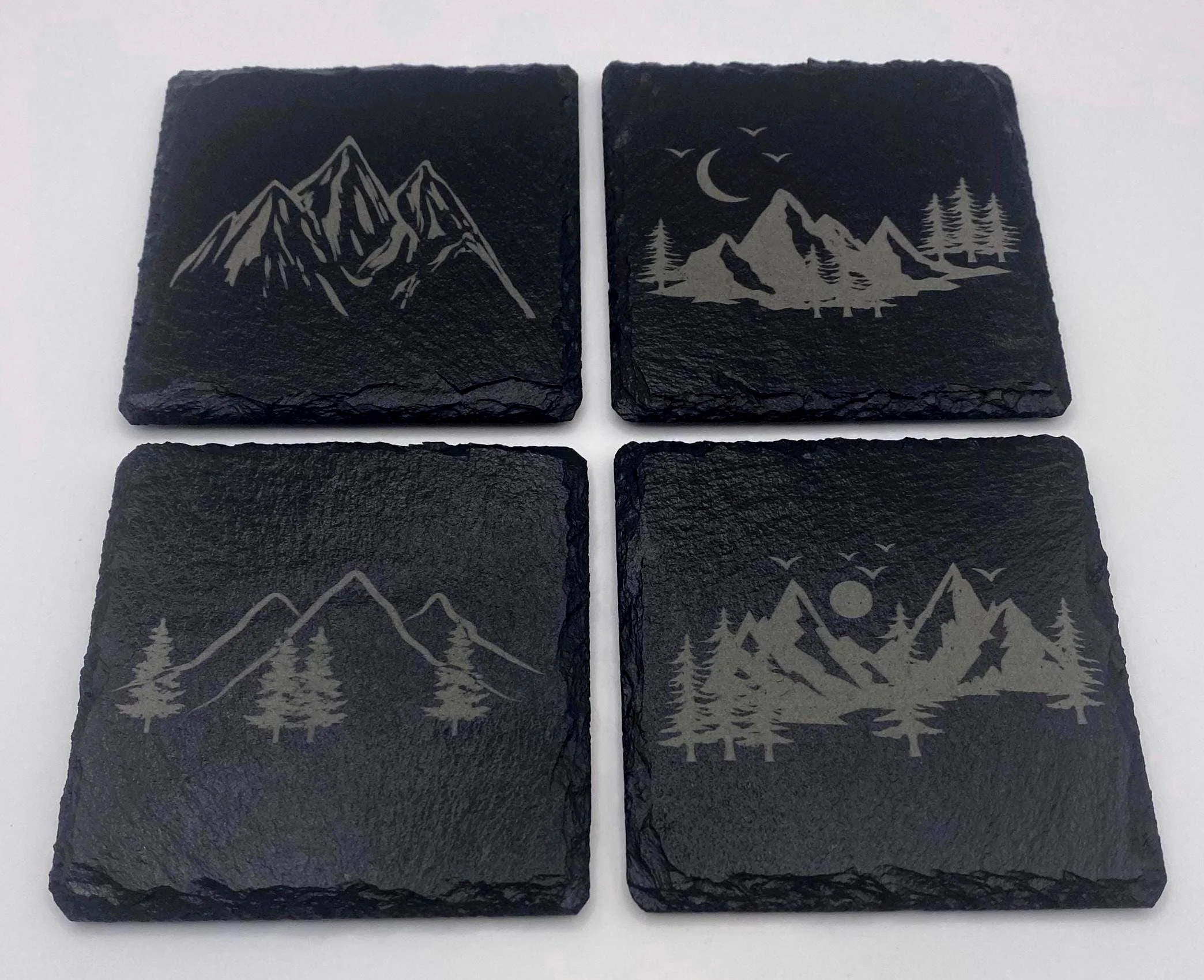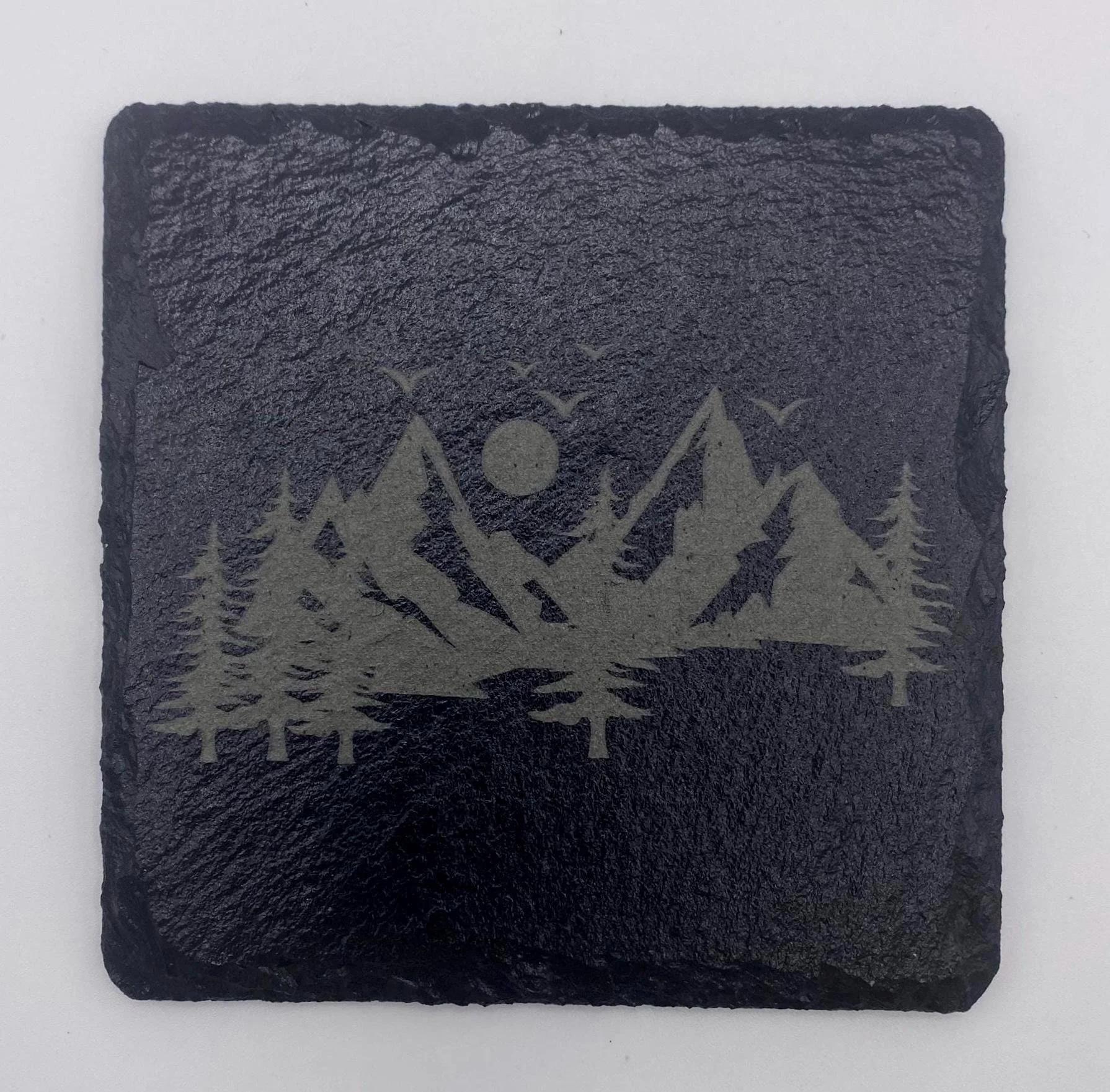 Engraved Slate Coaster Set - Mountain Scenery | Perfect Gift for Outdoor Enthusiasts