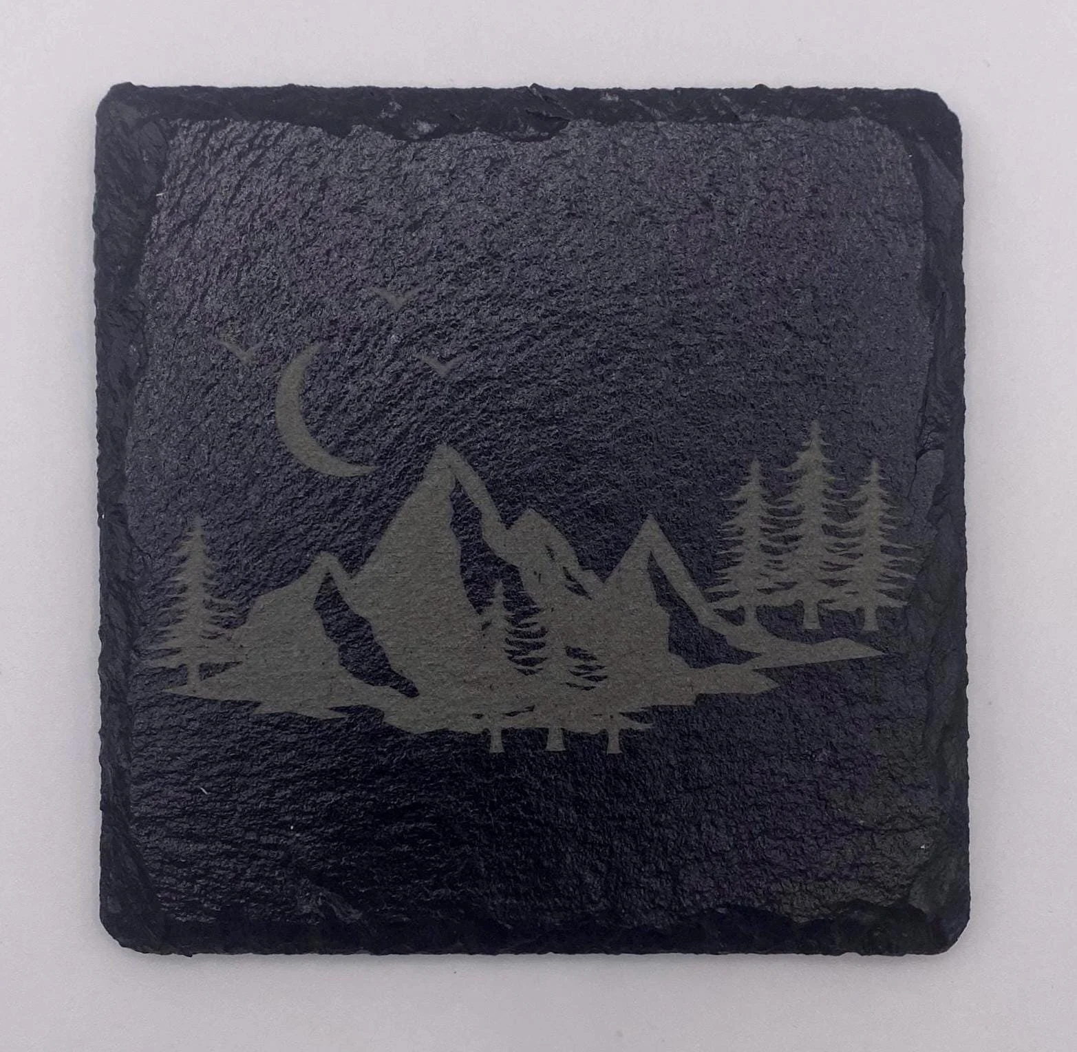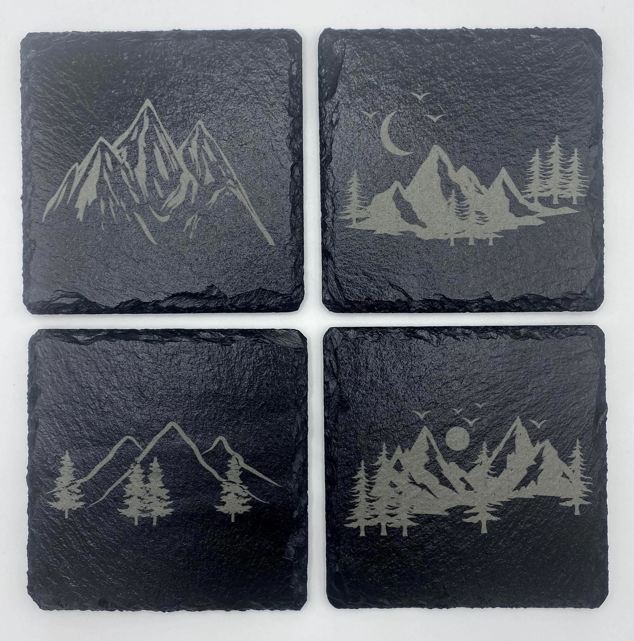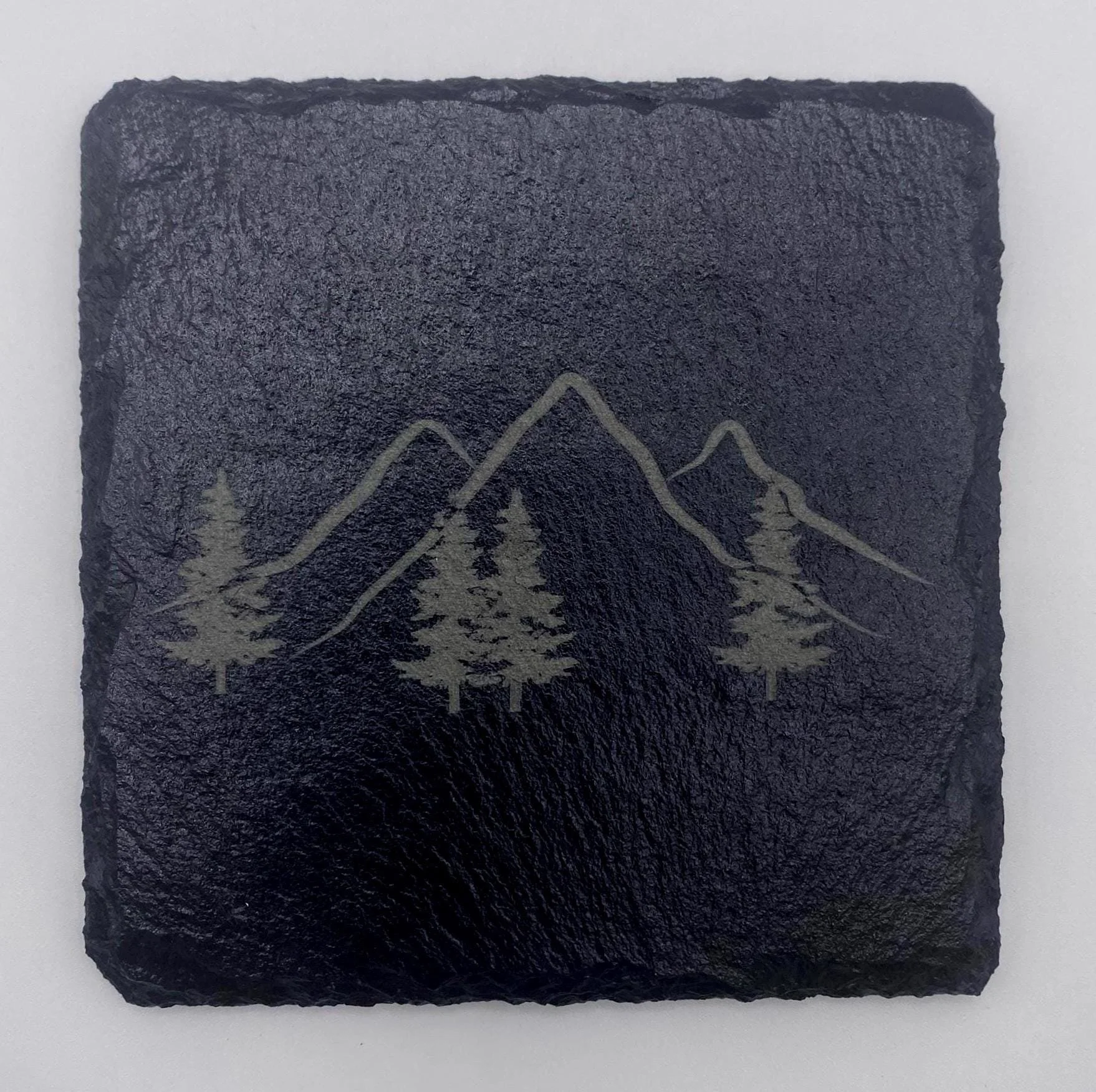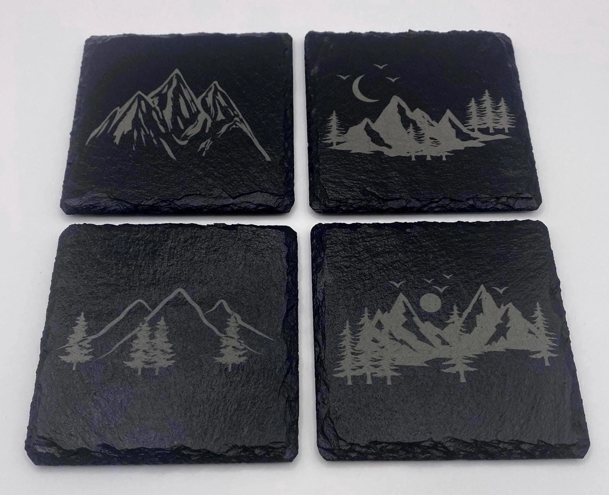 Engraved Slate Coaster Set - Mountain Scenery | Perfect Gift for Outdoor Enthusiasts - Free Shipping